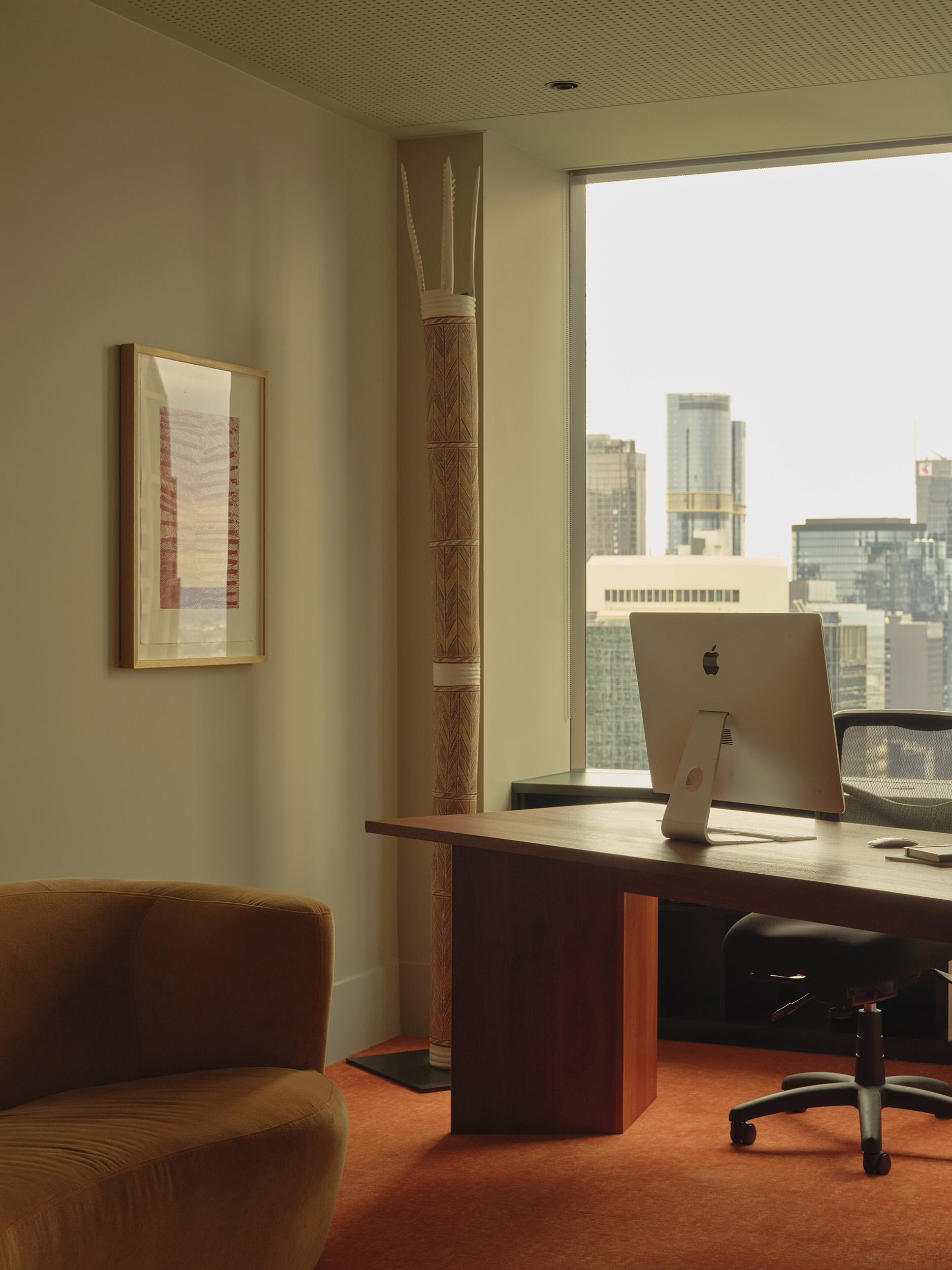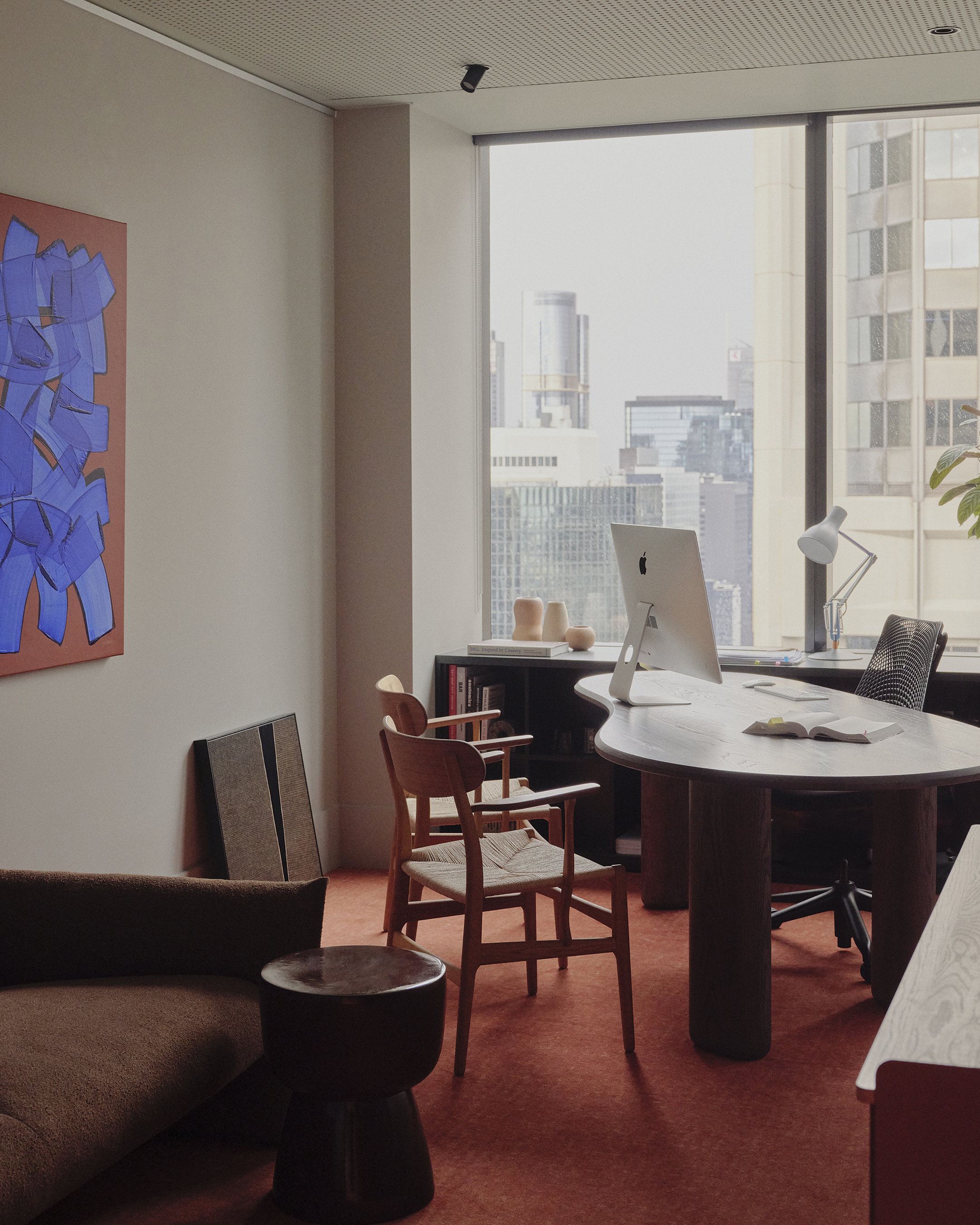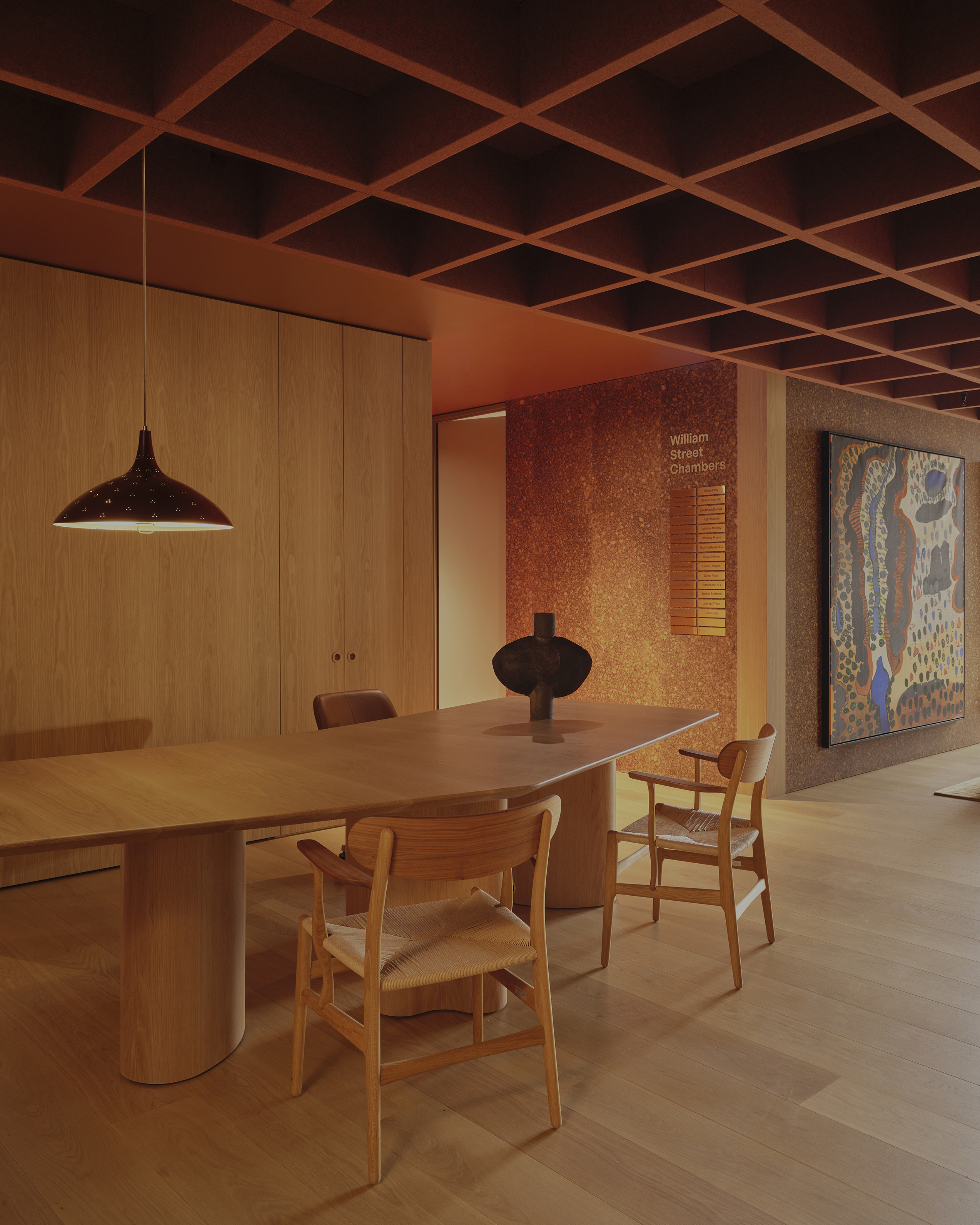 Essential to the design outcome was to ensure that individual chambers would be capable of customization acknowledging the unique nature of Barrister’s Chambers as a collective of allied individuals rather than a singular corporate identity. Visually and acoustically, the chambers are reminiscent of domestic settings in recognition of the need for comfort during often very long hours of work. The public and shared areas however, needed to be cohesive and reflect a consistent aesthetic and experiential quality reflecting the shared values of the Barristers who came together to form the Chambers. These values included an important aspiration for the project - to make an environment sensitive to the often extremely stressful situations that many of the Barristers’ clients face, including significant fines or prison sentences. To meet this need, we were careful to avoid cues or symbols of institutional, corporate or legal settings, and focused on making the spaces quiet, soft, private and natural. They are dignified, but not intimidating.