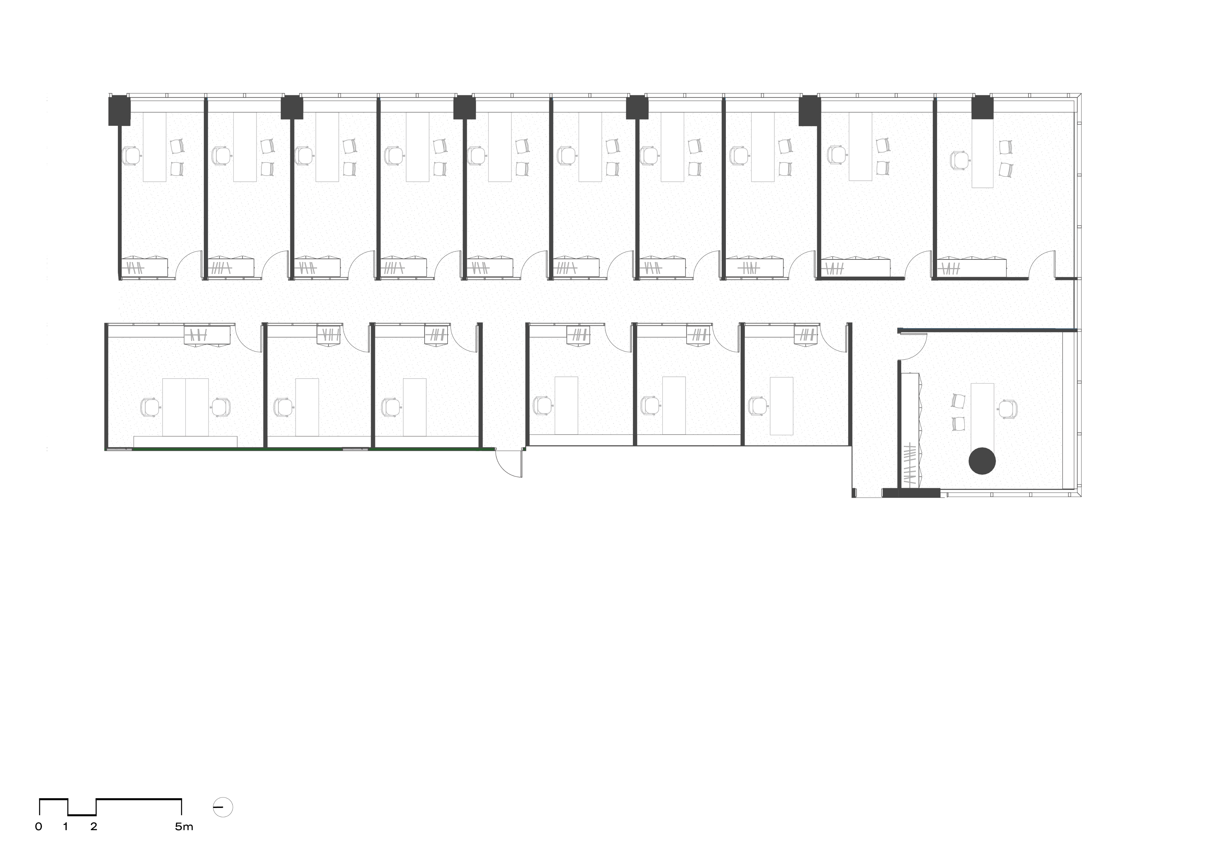 A compressed project program required an elaborate and concise consultant coordination process between the base build design engineers and fit-out consultant team. The brief included 26 separate chambers, each with high level acoustic separation and privacy. In addition to the individual chambers there is a central reception zone and meeting room with a nearby shared staff lounge, kitchen and staff dining.